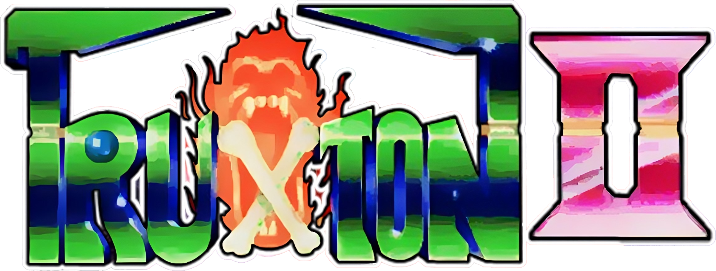 Gameplay is similar to the previous Truxton. Truxton II has six huge areas, each with a boss at the end; the game "loops" these six areas forever. Lives are given out at 70000 points, then every 200000 points after; players start with three. There are power-ups to increase ship speed, add a smartbomb to your stock, and change/strengthen your current weapon: red fires bombs in a small area around your ship, similar to the red weapon from Robo Aleste; blue is a homing laser, similar to the blue weapon from the original Truxton; while green fires wide-reaching salvos of green shots and more or less replaces the red weapon from Truxton.
