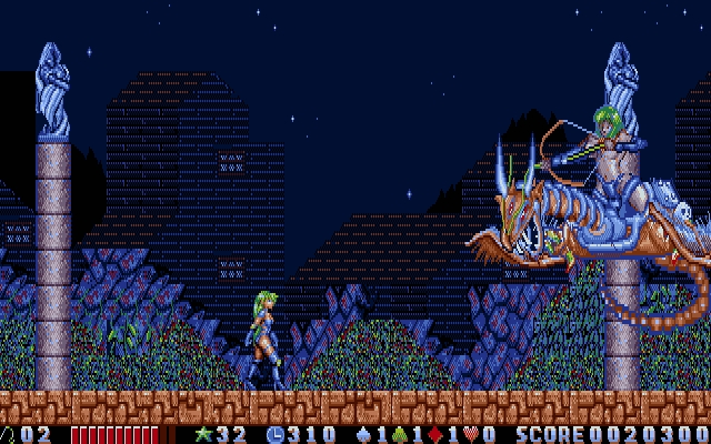 Rusty (ラスティ) is a Action/Platformer 2D video game published by C-Lab and developed by C-Lab released on July 16th, 1993 for the PC-98. Hundreds of years ago, the ruler of Transylvania, a man by the name of Monte Carlo, was sealed away by the soul of a lone sacrifice. However, that seal has, over the centuries, begun to weaken, and recently a great number of monsters have started to appear around the land. Young girls have started disappearing from the villages in the area, but there are whispers of one from afar who may be able to bring them safely back. A young girl named Rusty appears in one of the villages, seeking the source of the monsters. Two young children, whose sister was taken by the monsters, ask Rusty to save her, and she heads straight on, whip in hand.