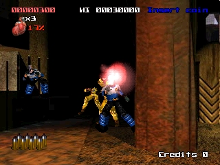 Judge Dredd is a 1997 arcade video game developed by Gremlin Interactive and released by Acclaim Coin-Operated Entertainment in the USA on December 17, 1997. Acclaim Coin-Operated Entertainment location tested Judge Dredd on November 26, 1997, before its official release on December 17, 1997. Judge Dredd is a light gun game set in the 22nd century, where Judge Dredd fights an ex-judge prison escapee, who kidnapped the mayor, and his army of merciless androids. The gameplay is similar to Area 51 and Maximum Force with some elements from Time Crisis, in that the game's full motion video is integrated with the action.