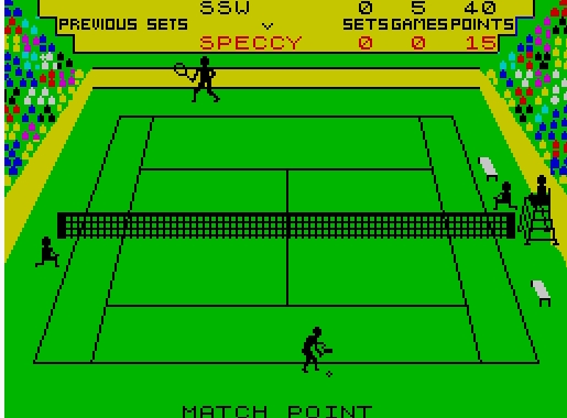 Sal a la cancha central y enfréntate con el mejor tenista de tu carrera. Disfruta la excitación y tensión del tenis en la dramática simulación que TE COLOCA en la cancha central estirándote para alcanzar ese saque voleado desde la red e intentando pensar y maniobrar mejor que tu poderoso oponente. Vista desde el puesto que ocupa el jugador. En 3-D. Puedes desafiar a tu oponente ordenador (o a otra persona) en el Open, hasta las finales, pero ino esperes tenerlo fácil! Alternativamente, puedes sentarte en el borde de la silla y disfrutar de una impresionante representación de control y habilidad en el partido de exhibición. Adaptable para joystick o teclado. Necesitarás dominar la "dejada", la "volea alta", el "golpe directo" y la "volea" como parte de tu repertorio de jugadas que deberían incluir el rescate de jugadas. Sin embargo, no es suficiente una total competencia técnica. Estrategia y táctica son aspectos vitales en el tenis, y debes desarrollar tu sentido de la pelota y el conocimiento de la disposición de la cancha o pagar el precio. Comienza un arriesgado juego de ataque o quédate atrás y agota a tu oponente -la elección es tuya, pero no dejes que se te vaya la concentración-. Una vez que domines las habilidades y estrategia del juego, lo único que te queda es aspirar profundamente y salir a la cancha, delante de la multitud expectante...