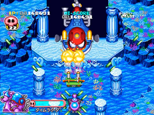 A scrolling shooter based on Tatsunoko's Time Bokan anime franchise. It's the sequel to Bokan to Ippatsu! Doronbo.
