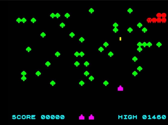 Full title Centipede Year of release 1982 Publisher (UK) Author(s) David J. Heelas Inspired by Atari Games Ltd (UK) (arcade coin-op: Centipede) Machine type ZX Spectrum 16K Number of players 1 Controls Keyboard Type Arcade: Action Message language English Original publication Commercial Original price £4.95