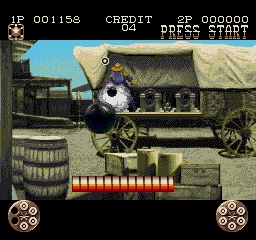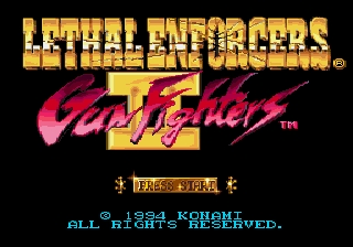 In this sequel to Lethal Enforcers you are the sheriff of a town set in the old Wild West. Using the control pad or Konami's own Justifier lightgun, you'll be taking out outlaws who are robbing banks and kidnapping innocents. You have the opportunity to upgrade and keep you gun, as long as you don't shoot the people you are trying to save. The action is usually shown on a single screen with enemies "popping out" from various sections. If you do not shoot them in time they will either shoot or throw various weapons at you. You will lose energy if they hit you or you hit an innocent civilian.