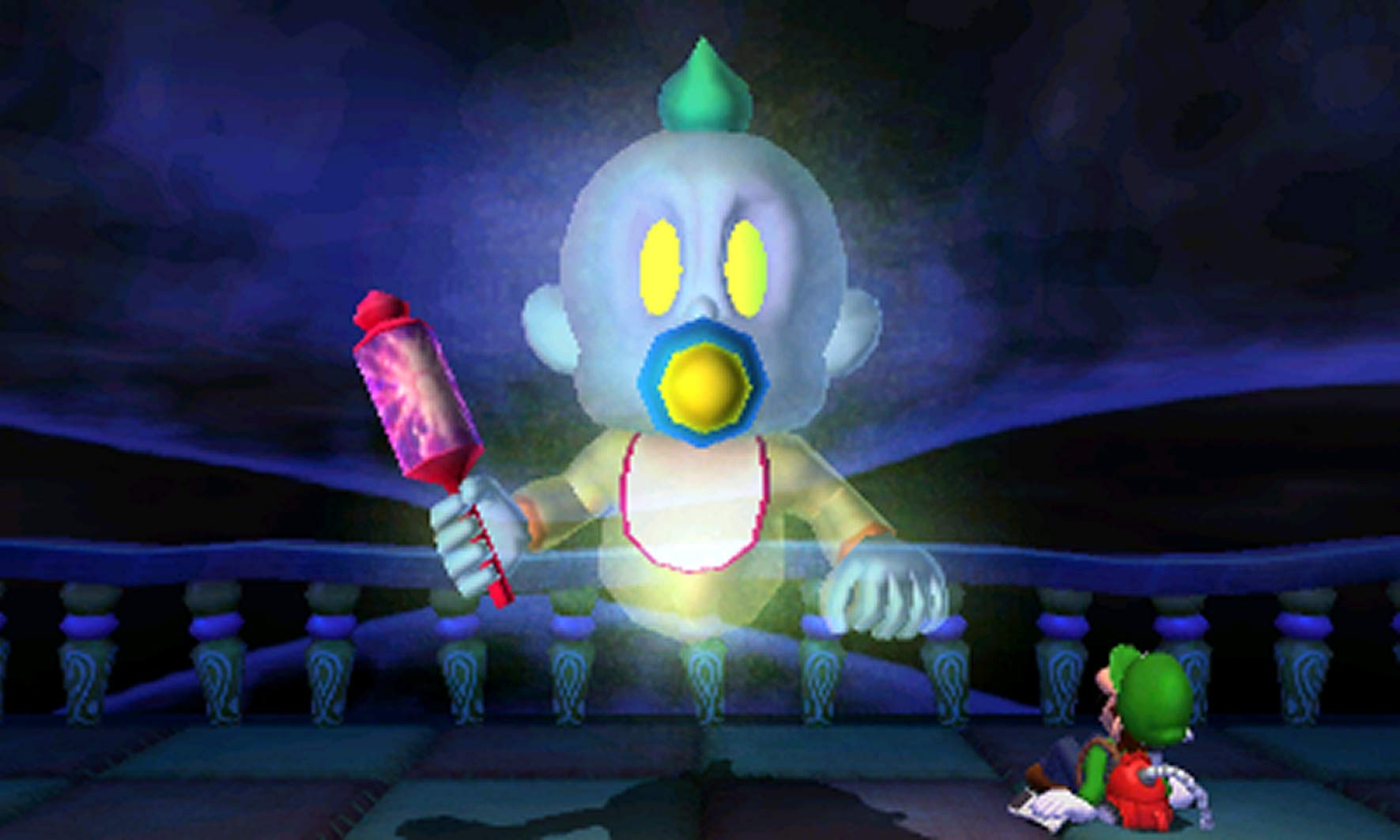 Luigi steps out from the shadow of his brother Mario and into the gloomy shadows of a very haunted house in this, his first-ever starring role. Armed with a flashlight and a customized vacuum cleaner, Luigi must rid the mansion of Boos and ghouls--and find his missing brother to boot. As Luigi, you'll search for the keys that open the many locked doors; vacuum coins, cash, and gold bars; and explore vases, bookcases, and drawers. From the brick-walled basement to the gloomy grounds, Luigi's Mansion is packed with chills, thrills, and creepy surprises.
