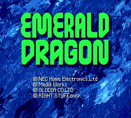 In Emerald Dragon the player takes control of Atrushan, a blue dragon who lives in the Dragon World. One day, he and his friends discover a ship wreck near a mountain. After examining the wreck, the dragons find a human child - a little girl. The wise White Dragon, the leader of the dragons, tells them that her name is Tamryn and that she will play an important role in their lives. The girl doesn't remember anything, and grows up together with the dragons. But when she turns fifteen, she decides to go back to her homeland - the Human World. Soon after Tamryn has left, Atrushan realizes he can't bear the separation, and asks the White Dragon to allow him to go and find Tamryn in the Human World. But a mysterious evil curse has been placed on the dragons - they can't appear among the humans in their true form. Atrushan agrees to become a human and goes to the Human World - to find Tamryn, and also a way to remove the curse... The game has many traditional Japanese-style RPG gameplay elements: Atrushan and his party travel around the game world, visit towns, descend into dungeons, and level up in an automatic fashion. One of the game's distinguishing features is its battle system. Characters are able to freely move over the battle field; the range of their movement depends on their agility rating. Only Atrushan can be given precise instruction during each turn. The player is able to position the characters strategically near or far away from the enemy, attack from different sides, and assign general strategies to the party members. Another notable feature of the game is the absence of a "world map": the game's locations are seamlessly connected with each other. The PC Engine (TurboGrafx) CD version of Emerald Dragon contains additional dialogue, scenes, and voice acting.