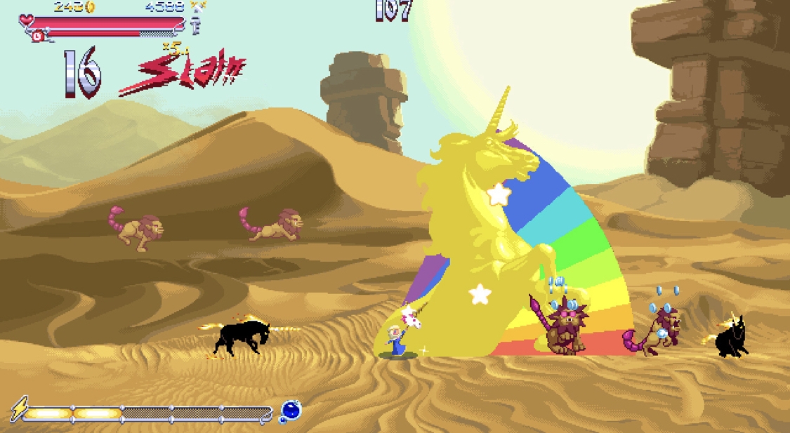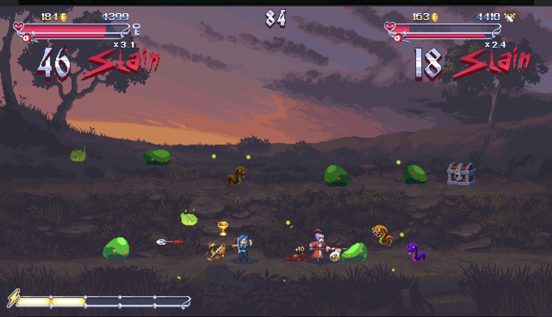 Engage endless hordes of monsters up close as a valiant knight, or shower them with arrows, bombs, and spells using 8 unlockable heroes with completely different skillsets and playstyles. Face the forces of darkness alone or team up with a friend in local co-op with a drop-in multiplayer feature.