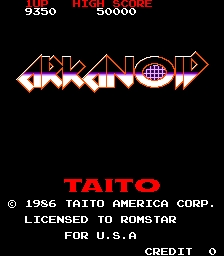 Arkanoid is a 1986 arcade video game developed by Taito and released by Romstar in the USA on August 1, 1986. The plot involves the starship Arkanoid being attacked by a mysterious entity from space named DOH. A small paddle-shaped craft, the Vaus, is ejected from the Arkanoid. The player controls the Vaus, moving it from side to side in order to hit a ball into an pattern of bricks and destroy them. After all bricks have been destroyed, the player advances to the next level and faces a new pattern. Most bricks can be destroyed in one hit; some require multiple hits, and others cannot be destroyed at all. Some bricks release capsules that bestow various power-ups when caught, such as increasing the length of the Vaus, temporarily slowing the ball down, or granting an extra life. Floating enemies/obstacles emerge onto the screen at times and can be hit for bonus points. On the final stage, the player takes on the game's boss, "DOH". Once this point is reached, the player no longer has the option to continue after running out of lives, making this segment more difficult. The game is over regardless of the outcome. If the player succeeds in defeating "DOH", the game rewards them by showing the ending, in which time starts to flow backwards, and Vaus escapes the distorted space just in time to return to the Arkanoid, which has also reversed back to perfect condition. The game's text warns, however, that the journey has only started, and that the player has not seen the last of "DOH".
