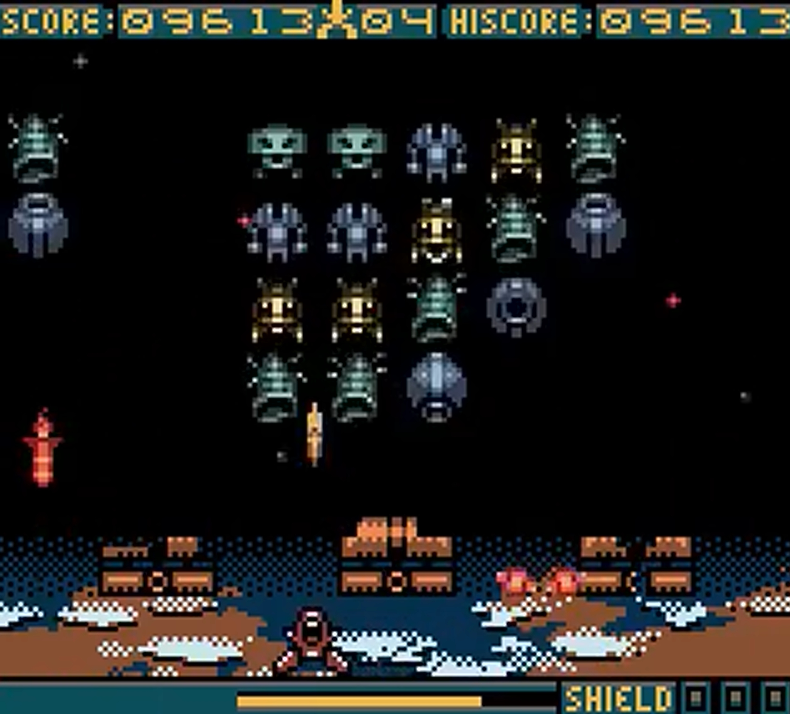 Aliens are trying to take over the solar system, and you're the only one that can stop them. You are the best pilot on Earth, and you must defend all of the planets. After choosing your vehicle from the three that are available, it will stay at the bottom of the screen as a formation of aliens slowly moves down the screen. Your job is simple: blast the aliens out the sky. When they are decimated, you will move on to the next level. Fortunately, there are several power-ups available including electricity, solar flares, bubbles, shurikens, and others. As you progress through the game, new aliens with new formations will appear, not mention a boss character or two. If you are lucky enough to make it through all of the game levels, you will be able to play a version of the original arcade game released in the late '70s. Defend the Earth from tyranny in SPACE INVADERS.